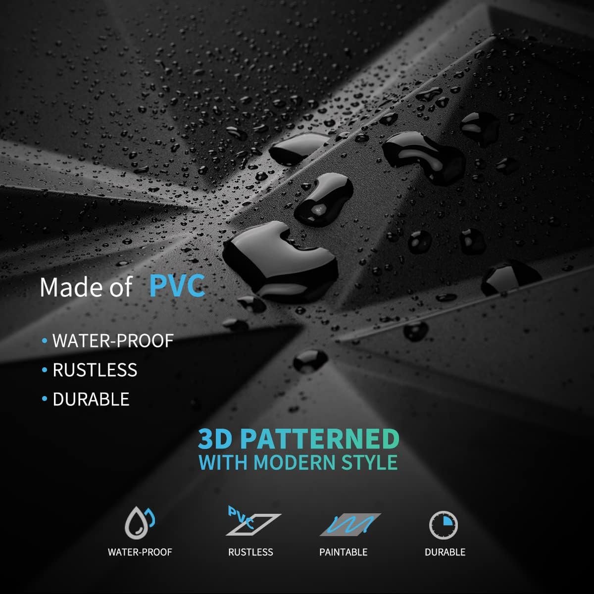 Crafted from high-quality PVC, these decorative panels stand out for their fire resistant properties and lightweight build. With a matte black finish and diamond pattern, they immediately modernize living rooms, bedrooms, office lobbies, or even creative studios. Each box contains 33 feature wall sheets, providing enough coverage for most accent projects.