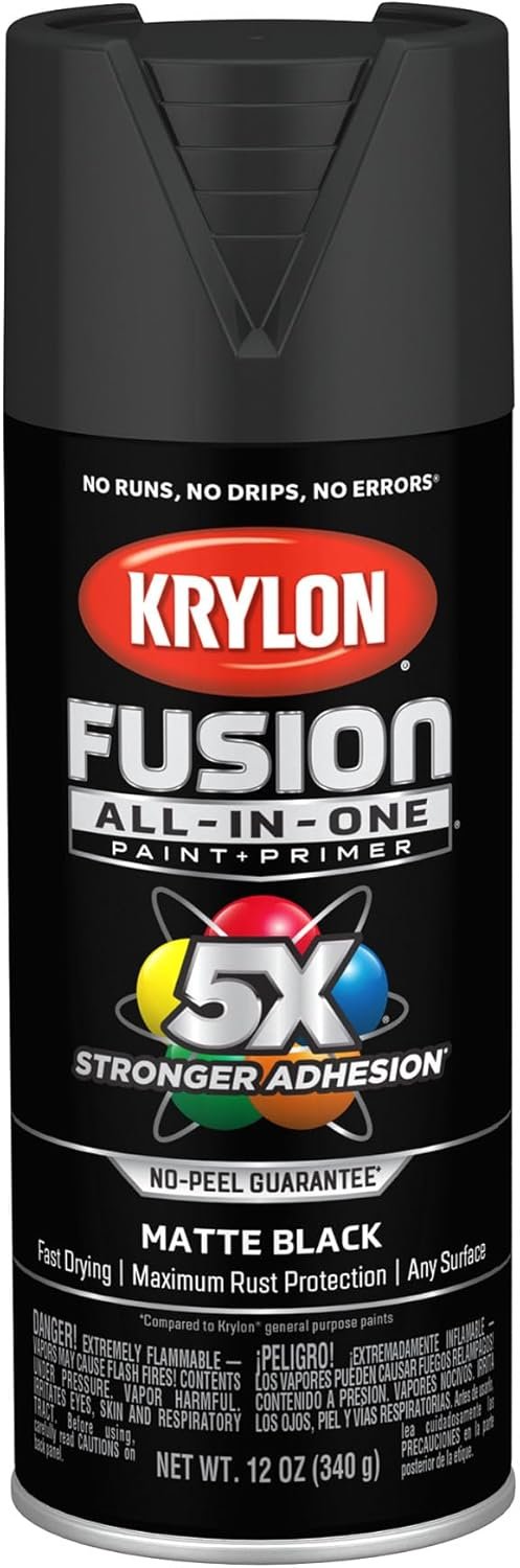 Upgrade your DIY projects with Krylon Fusion All-In-One Adhesive Spray Paint – a trusted brand since 1947. This powerful 12 oz black spray paint provides 5X stronger adhesion to tough surfaces like plastic, wood, and metal, all without sanding or priming. With best-in-class durability, rust protection, and fast drying time, it's perfect for both indoor and outdoor use. Choose Krylon for reliable coverage and vibrant results on every project.