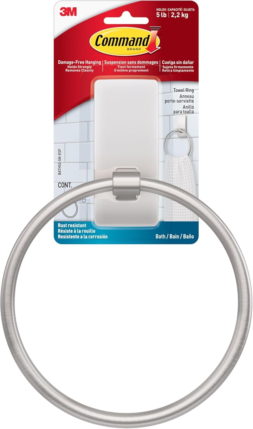 It installs cleanly using a removable adhesive, so renters love its “no drill towel hook” capability. The Command brand promises easy removal and the ability to rehang your bath accessory hanger wherever needed. It suits anyone looking for a wall mount that keeps surfaces pristine.
