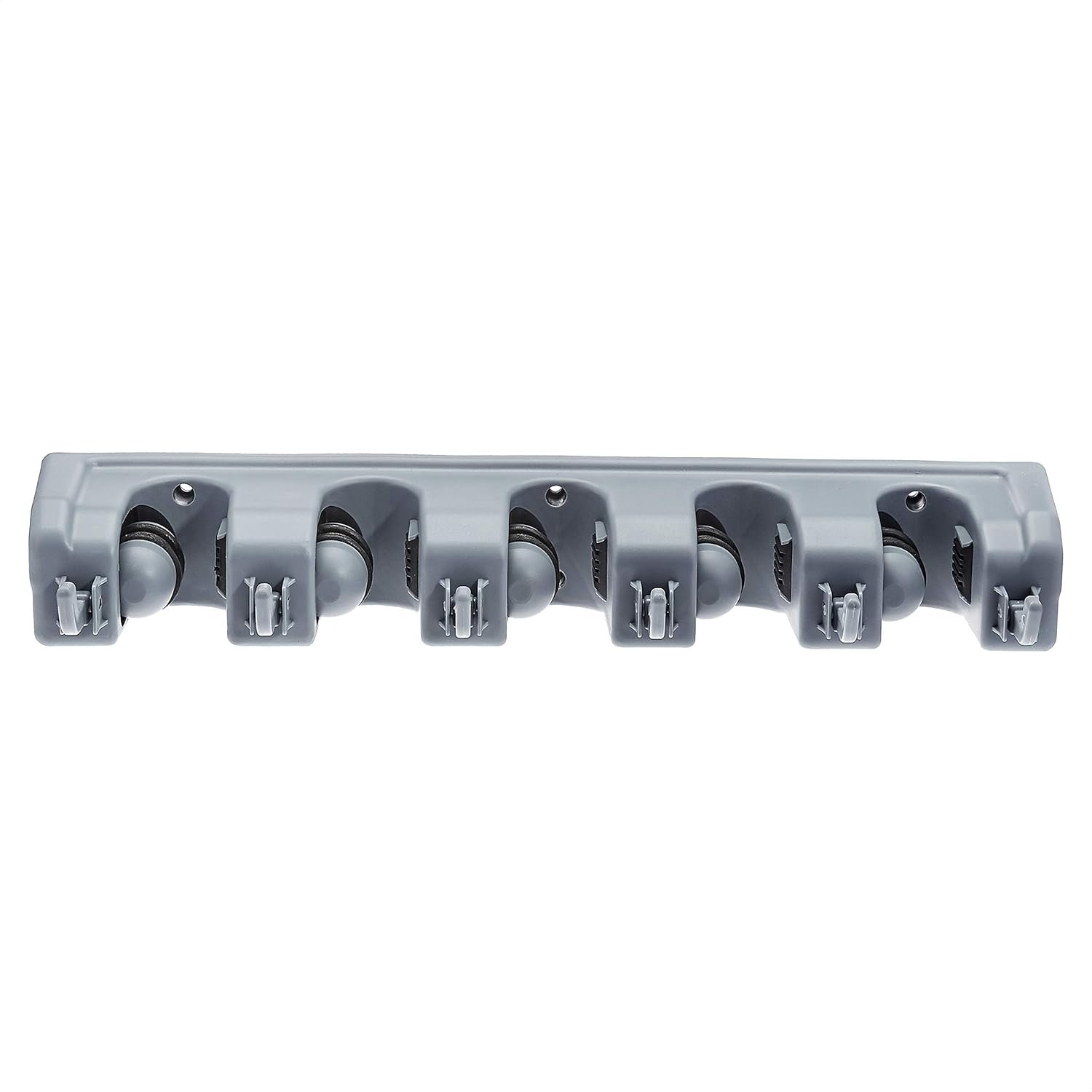 The Amazon Basics Rectangular Heavy Duty Wall Mount Broom and Mop Holder is an essential organizer for any garage, kitchen, or laundry space. Designed with 5 secure anti-skid slots and 6 foldable hooks, it neatly stores brooms, mops, and tools, supporting up to 35 pounds for reliable, mess-free organization. Made from weather-resistant ABS plastic, this sturdy tool organizer installs easily with included hardware, making it a durable and space-saving choice for both indoor and outdoor use.