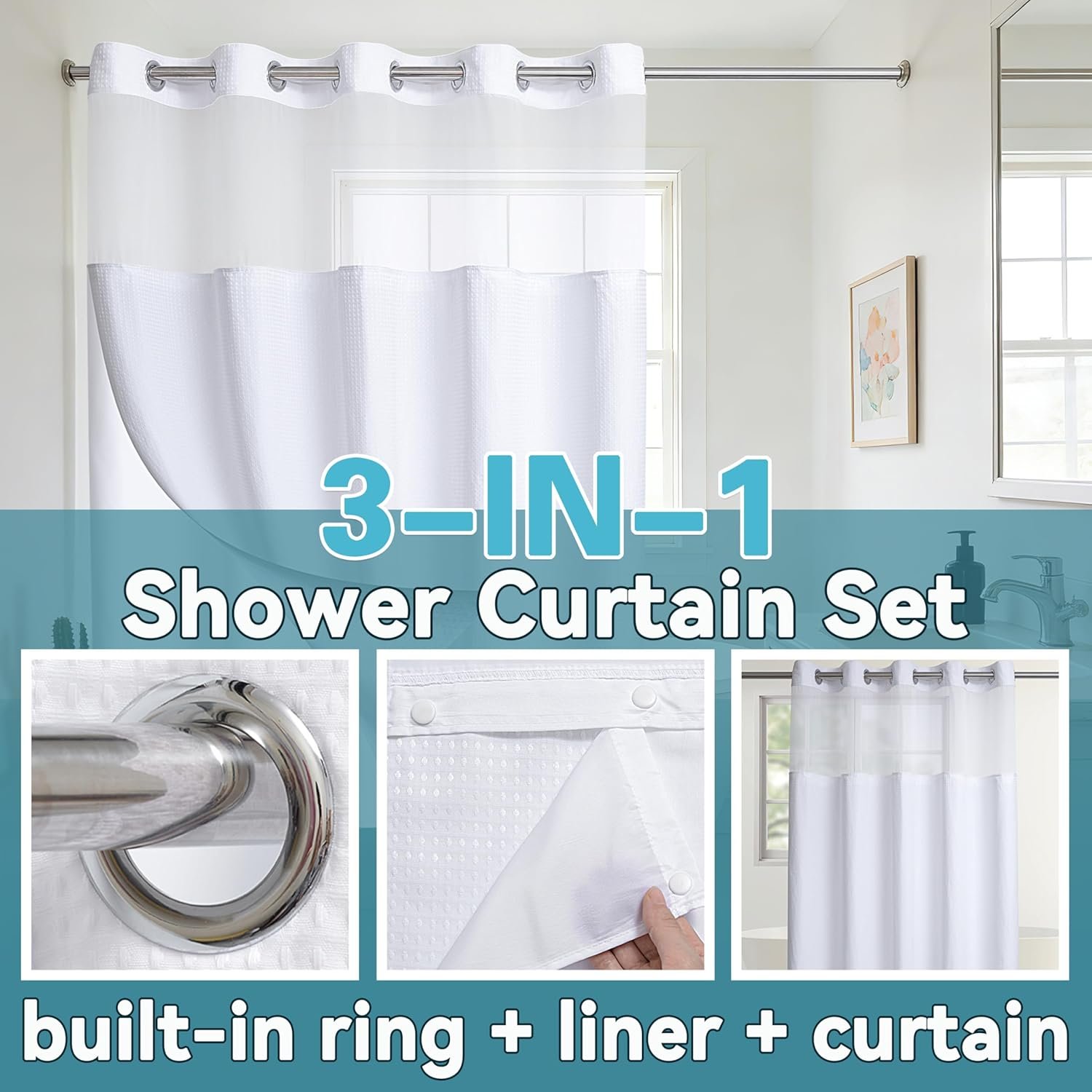 - Snap-in Liner: The removable liner shower curtain feature allows for effortless cleaning and replacement, combining hygiene with practicality.