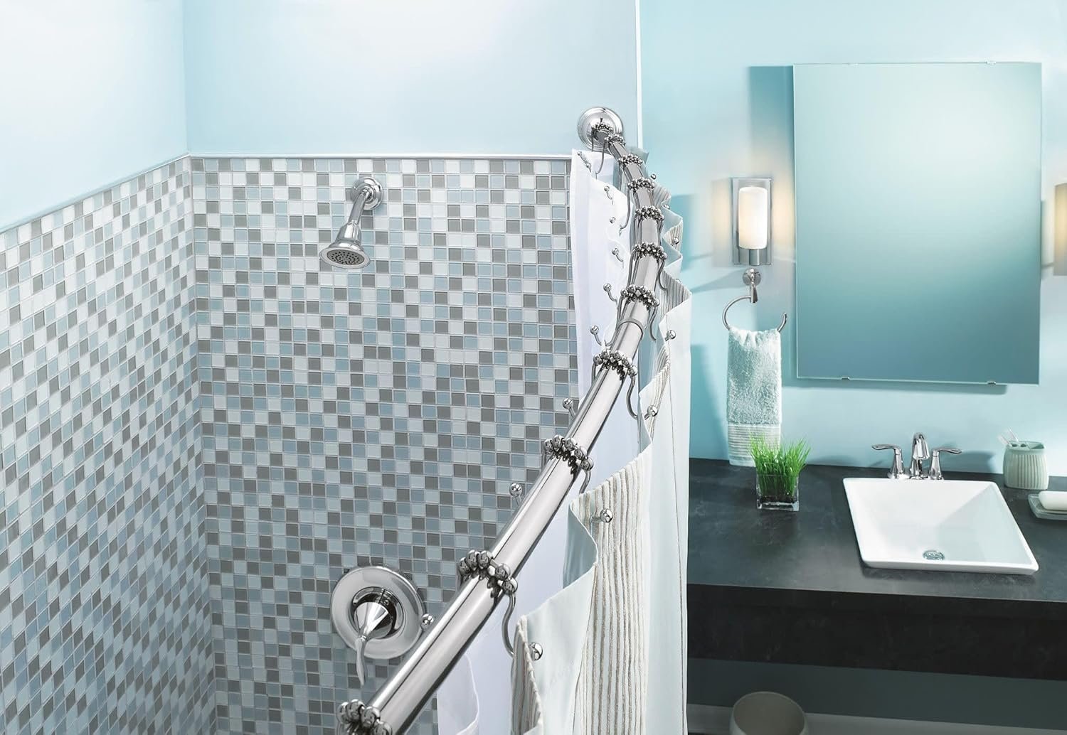 For more help choosing between adjustable shower hardware, see our side-by-side bathroom rod comparison. The curved rod fits most conventional showers and will satisfy users looking for style and reliability.