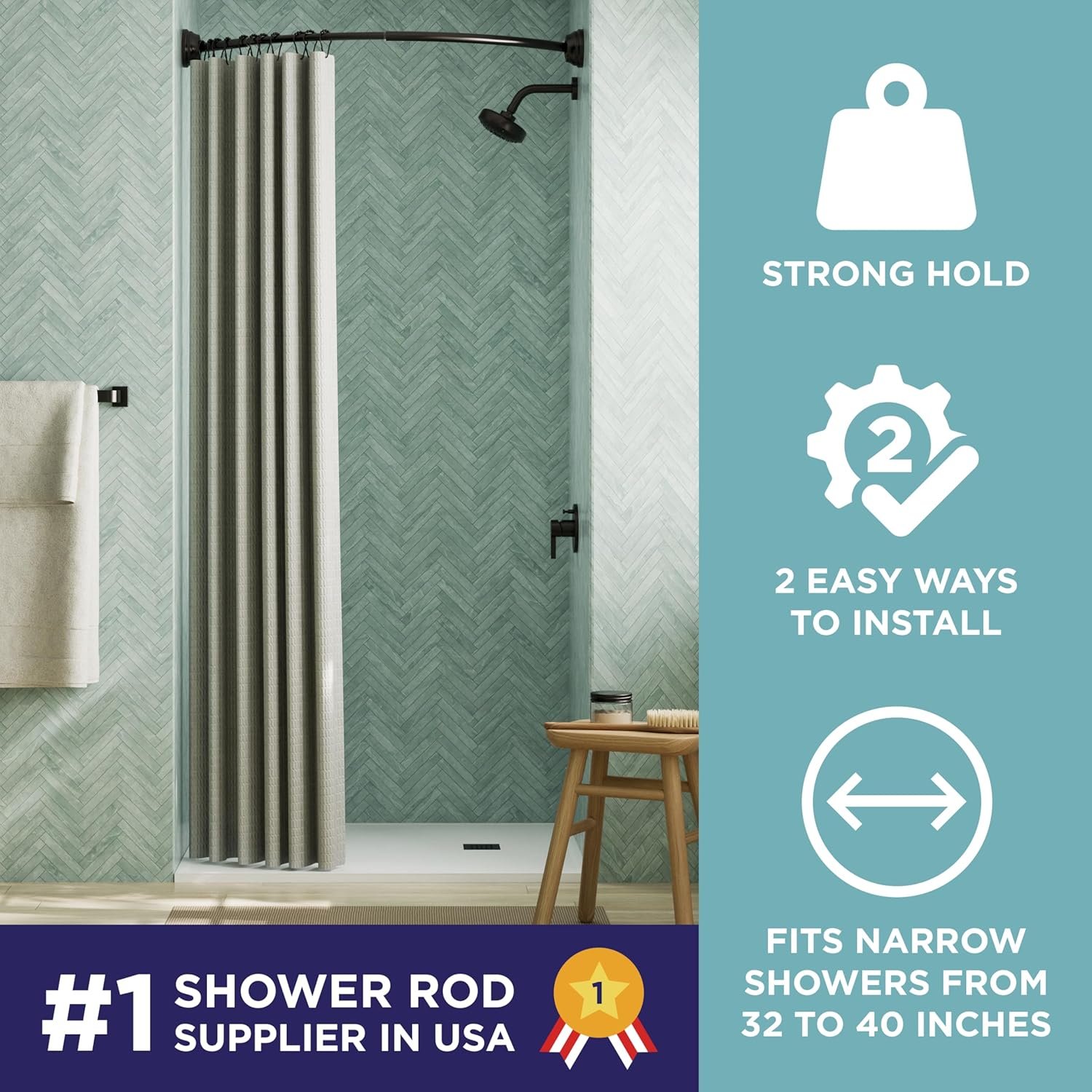 Transform your small bath or shower space with the Zenna Home No Drill Curved Shower Curtain Rod. This rustproof, adjustable rod (32-40 inches) easily installs with either no-drill tension or permanent wall-mount options, thanks to its patented design. Its curved shape adds up to 5 extra inches of elbow room, while the stylish bronze finish enhances any bathroom decor. Ideal for narrow showers, this rod is a space-saving, durable upgrade that’s built to last.