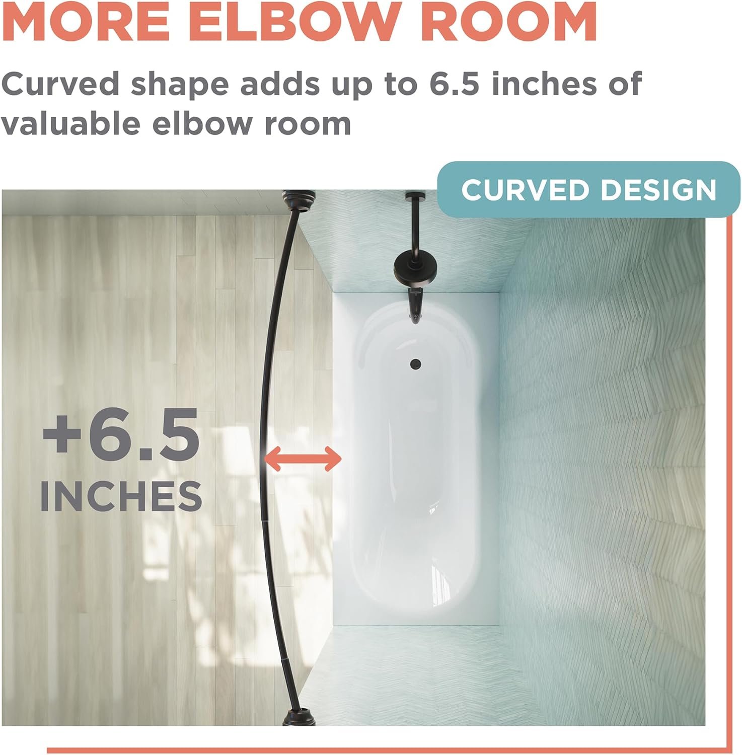 Yes, the curved rod increases your shower’s elbow room by up to 6.5 inches for a noticeably larger feel, which is why it’s popular for small spaces and retrofits. - What makes it rustproof?
