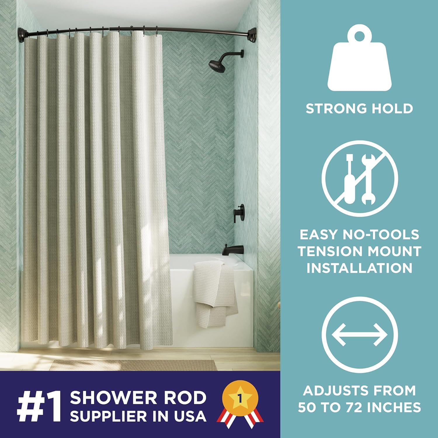 - No drill, tool free installation: Tension mount rod uses non slip shower rod technology—perfect for renters and easy updates.