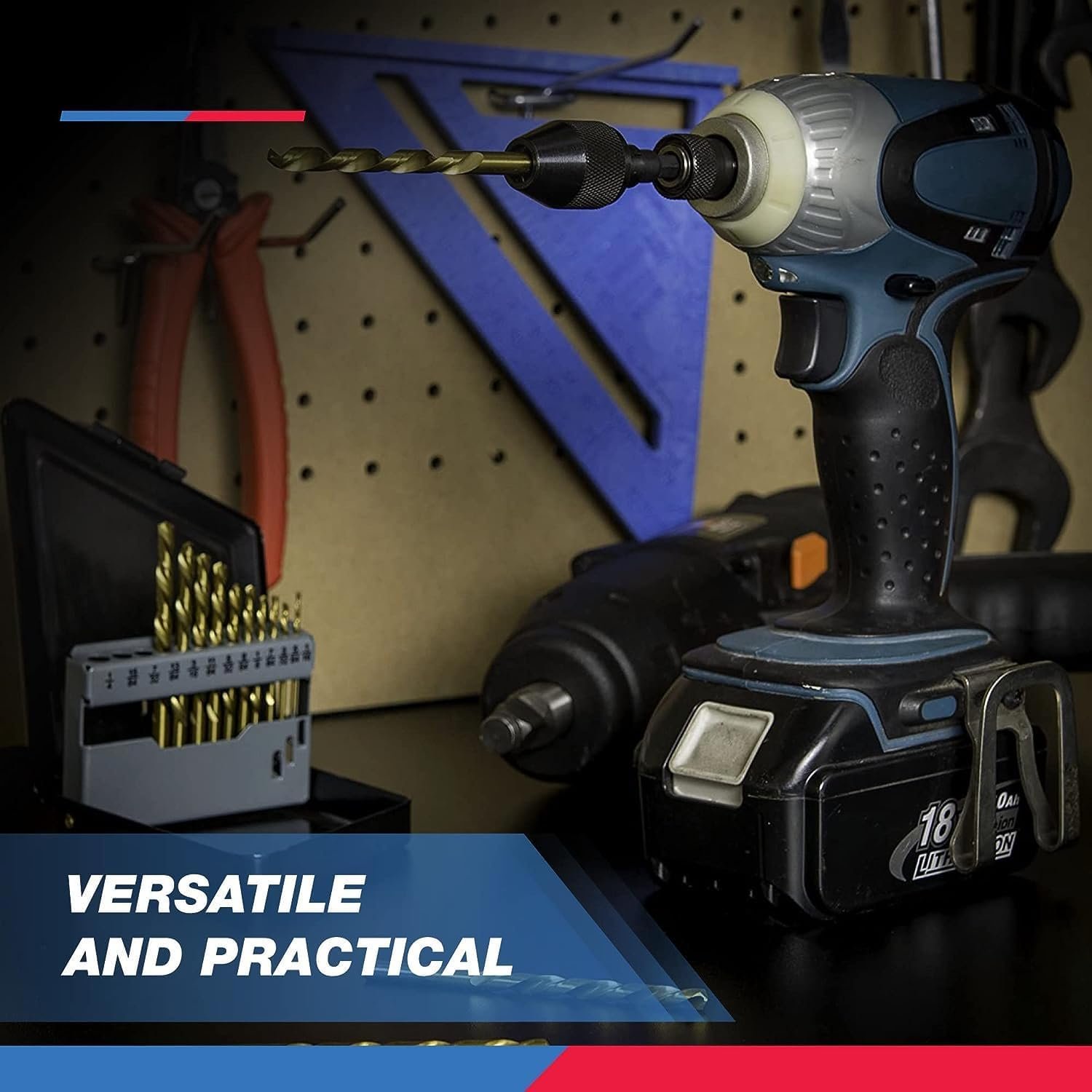 The drill extension provides far greater reach and flexibility, allowing you to drill or drive in tight spaces without sacrificing grip strength or bit retention.