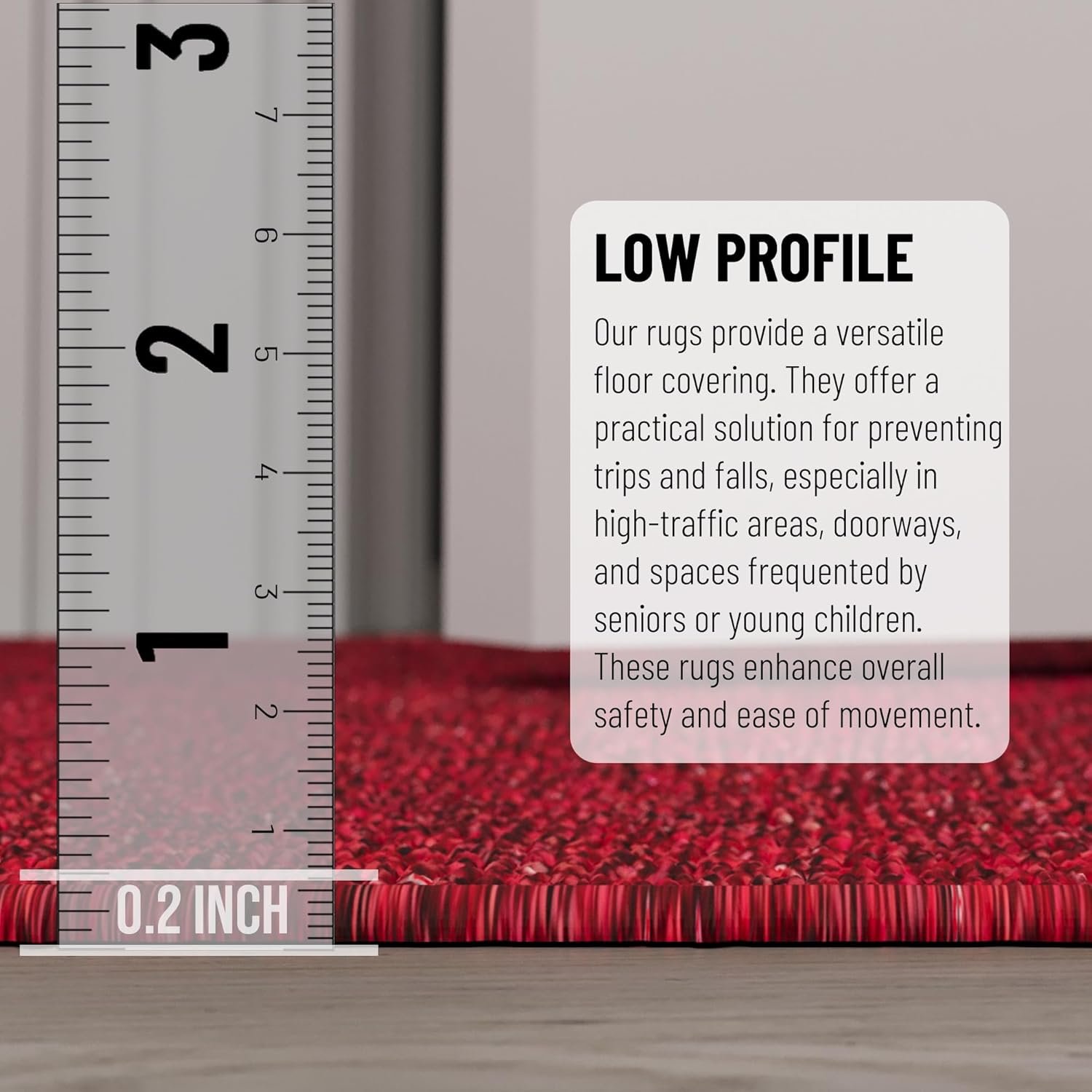 - Ultra Thin Build: This model boasts a 0.2-inch profile, allowing doors to glide over it. The ultra thin rug profile is perfect for tight doorways and high-traffic entryways.