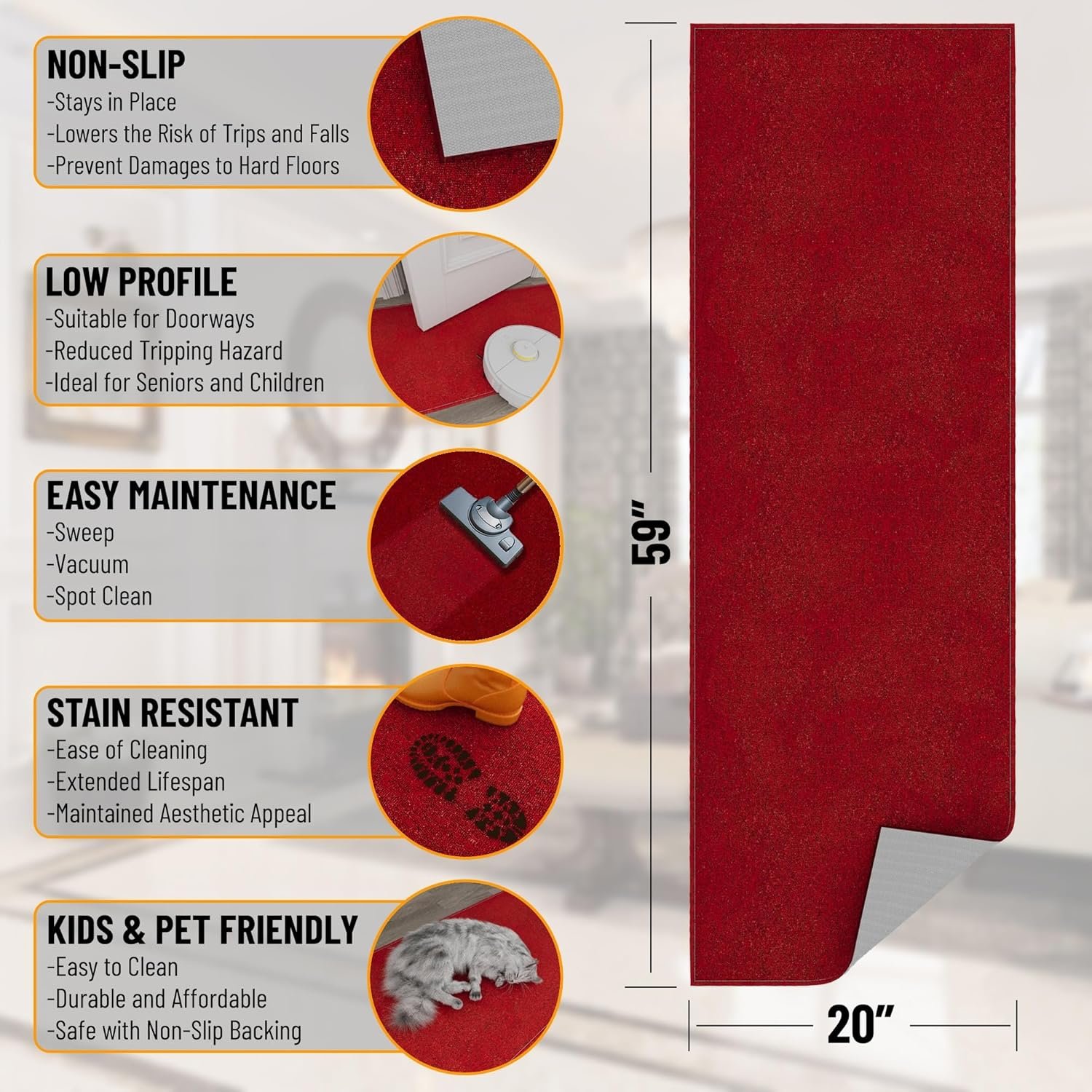 - Versatile Sizing & Color: Suitable as a doorway rug, hallway mat, or kitchen runner, while the rich red runner option adds color to any space.