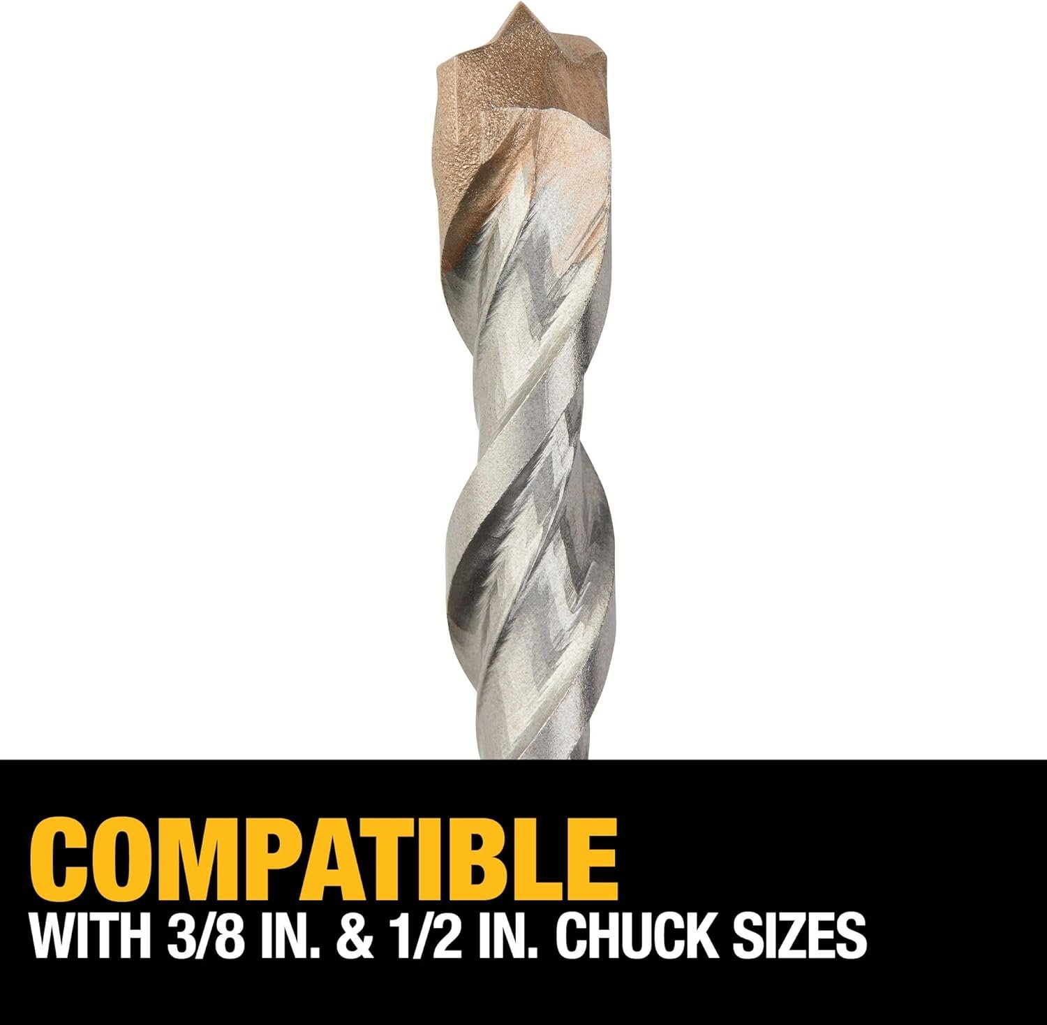 The DEWALT masonry drill showed solid performance across multiple surfaces in our real-world testing. When used with a percussion drill, this product drilled clean 3/8″ holes through poured concrete in under 25 seconds. It handled block drilling without excessive wear, thanks to the hardened carbide tip and efficient four flute design.