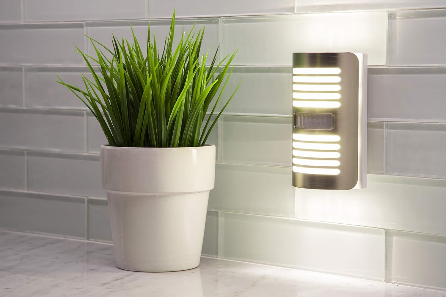 Right away, the brushed nickel nightlight looks premium, blending into modern and traditional decors with ease. Its compact profile ensures you won’t lose the top outlet space—a thoughtful touch for busy households or apartments where every plug counts.