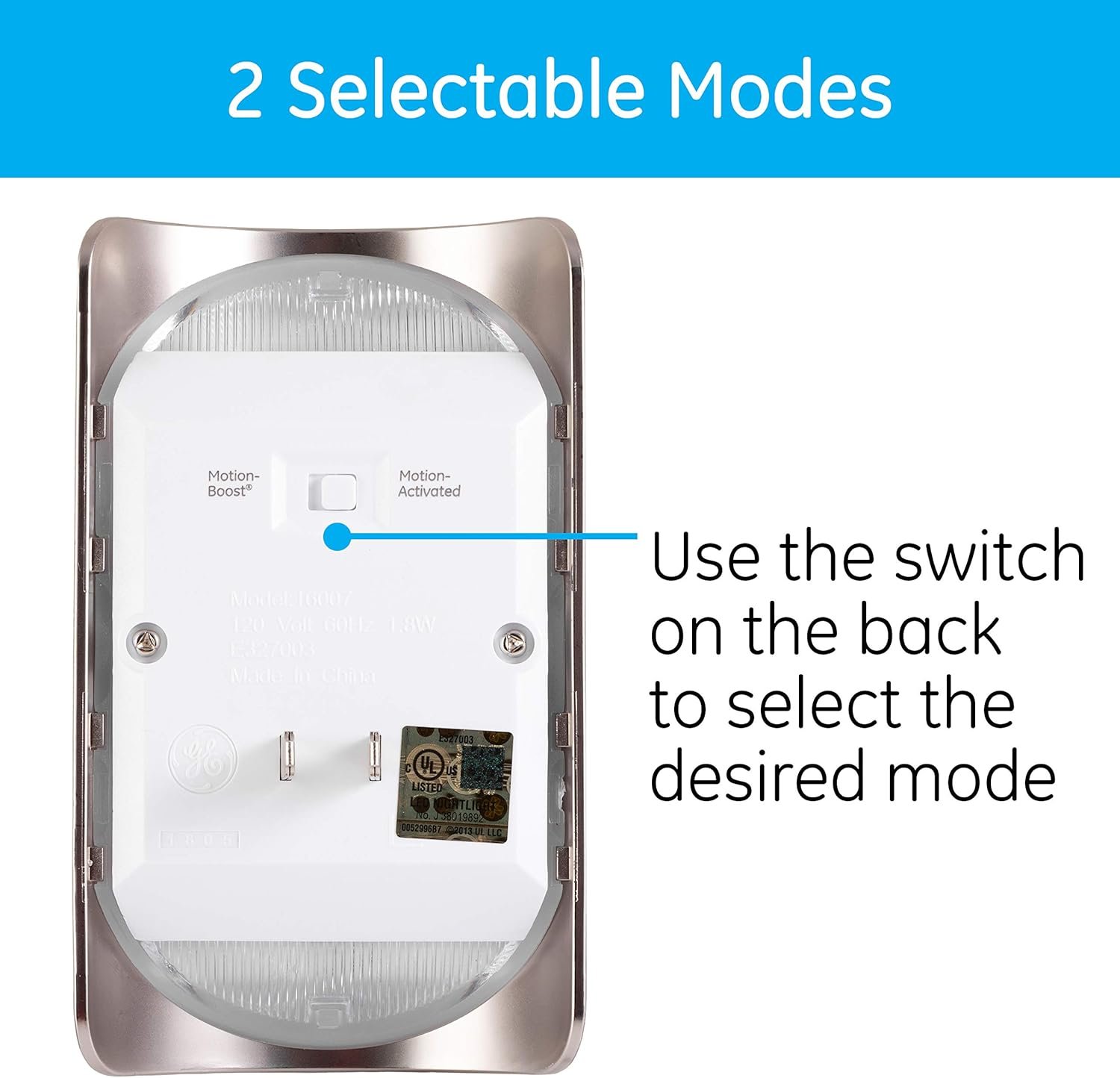 Illuminate your home efficiently with the GE Enbrighten LED Motion Sensor Night Light, a plug-in solution that combines energy-saving Motion-Select technology and a sleek brushed nickel finish. Choose between Motion-Boost or Motion-Activated settings to customize light output up to 40 lumens and enjoy enhanced safety with a 25-foot motion detection range plus dusk-to-dawn operation. UL Listed and designed in the USA, this dependable night light from GE is perfect for hallways, bedrooms, or bathrooms—making nighttime navigation safer and more convenient.