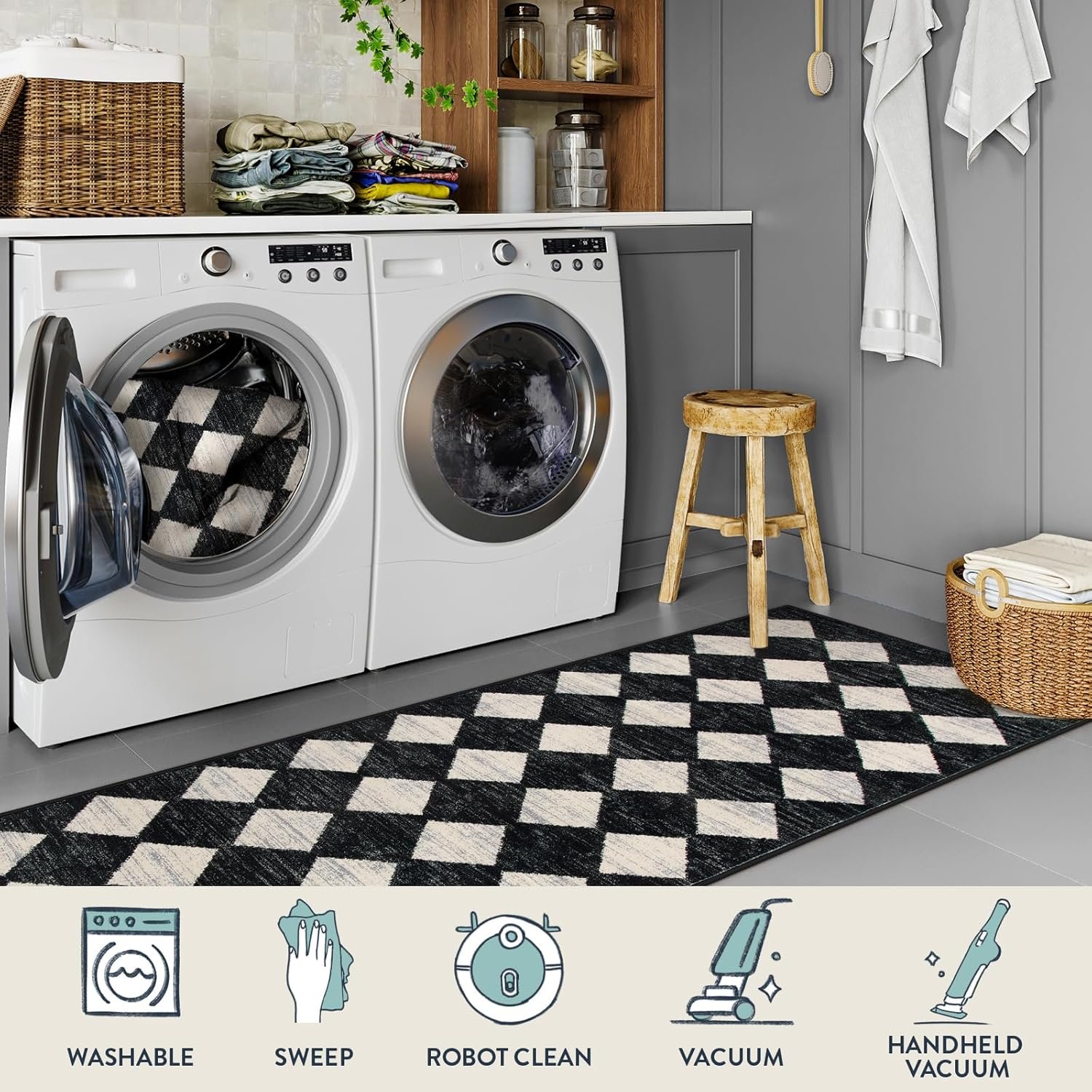 The Lahome Moroccan Trellis Runner Rug combines modern style with comfort and practicality, perfect for high-traffic areas like entryways, kitchens, and bathrooms. Its soft medium pile delivers a cozy feel underfoot, while the non-slip TPE backing ensures safety and floor protection. Machine washable for easy care, this retro-inspired rug from the Lahome Store features a timeless diamond checkerboard pattern that elevates any space. A must-have accent mat designed for busy, stylish homes.