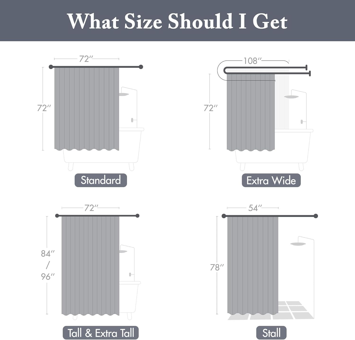 - Multiple versatile sizes: Available in standard 72×72 inches as well as oversized options for larger or custom showers.