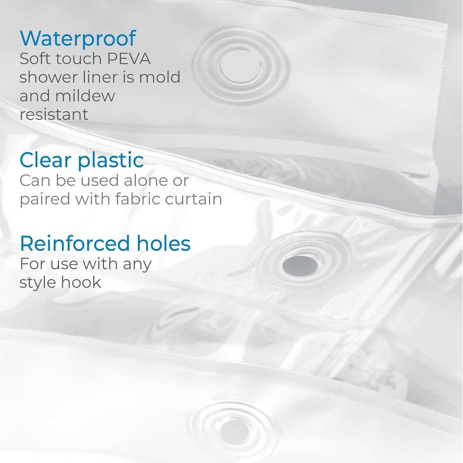- PEVA Plastic Construction: Made from durable, non-toxic PEVA for safer home use compared to PVC.