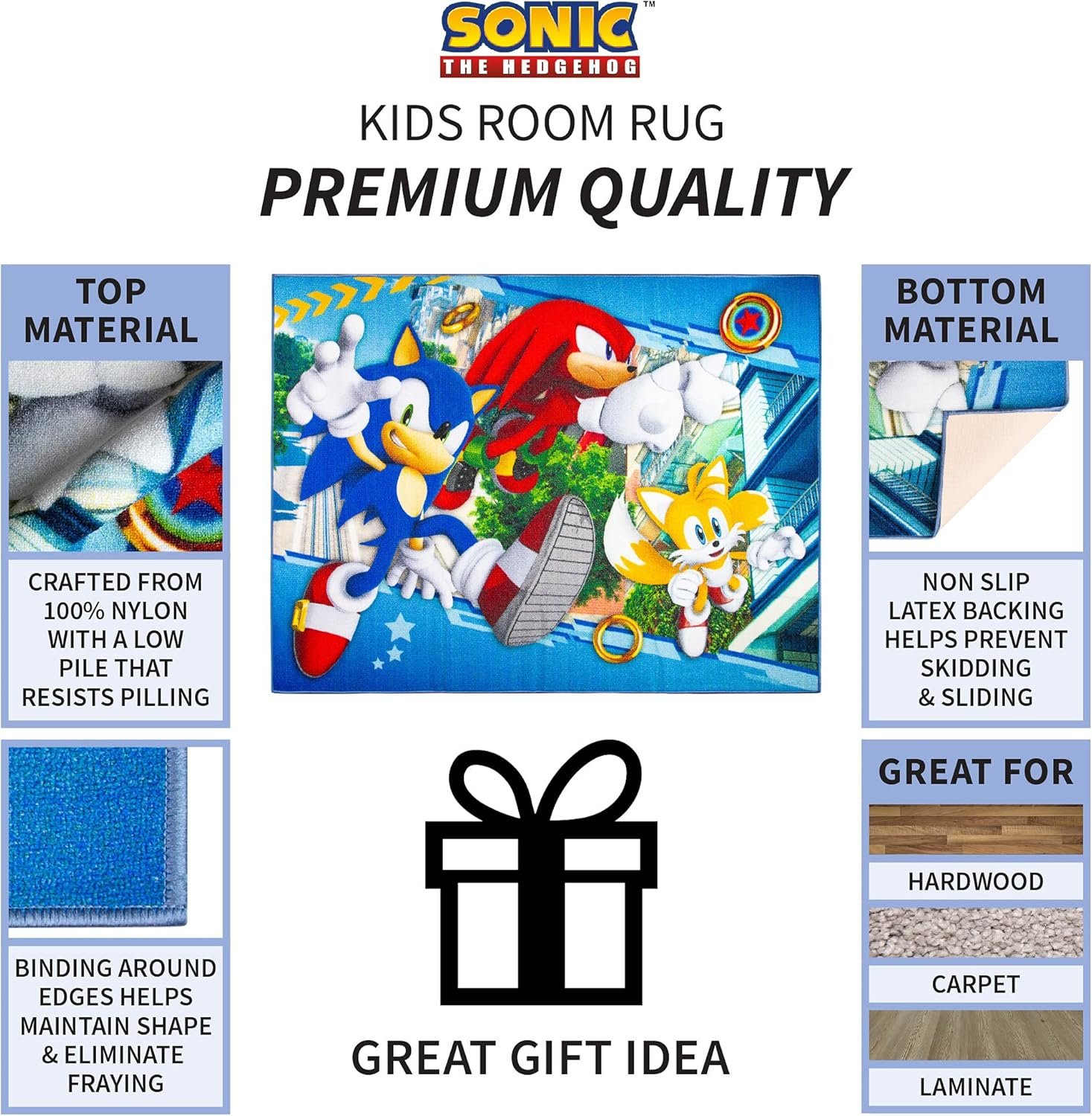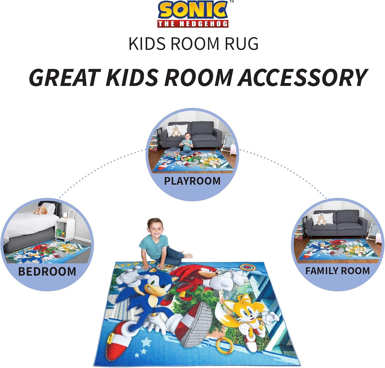 - Eye-catching Sonic the Hedgehog artwork: Features favorite SEGA character rug designs that motivate kids to play. LSI keywords: gaming decor, colorful kids rug, SEGA character rug.